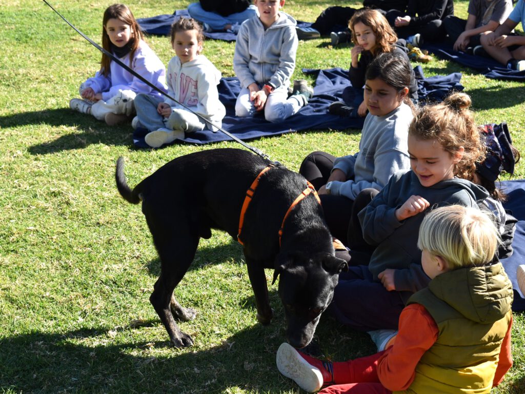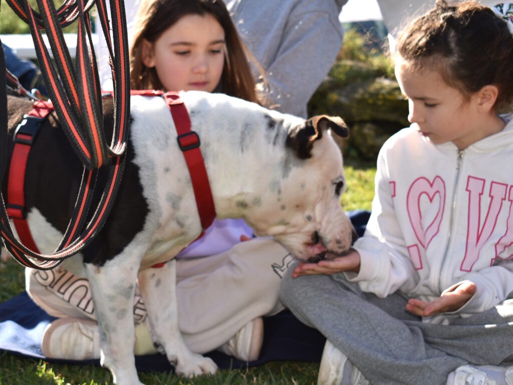 Los niños se acercaron con calma, respetando el espacio, permitiendo que los perros olfatearan primero y observando sus señales. Fue muy bonito ver cómo aplicaban lo aprendido con tanta naturalidad y sensibilidad.