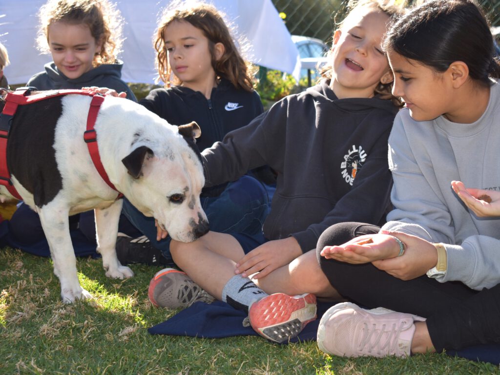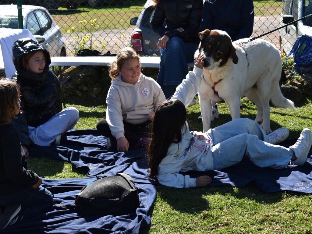 Los niños se acercaron con calma, respetando el espacio, permitiendo que los perros olfatearan primero y observando sus señales. Fue muy bonito ver cómo aplicaban lo aprendido con tanta naturalidad y sensibilidad.